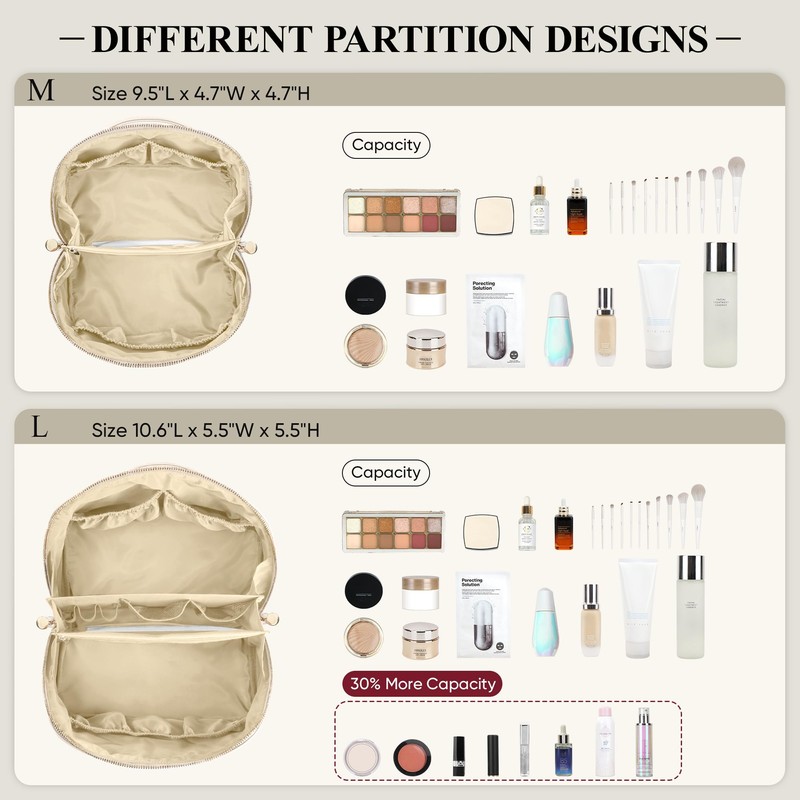 - 【Large Capacity】 MSTONAL travel makeup bag is available in medium (9.5 "x4.7 "x4.7") and large (10.6 "x5.5 "x5.5"), equipped with multiple compartments and separate pockets to easily hold skincare, makeup bottles, makeup brushes, and other daily necessities.
