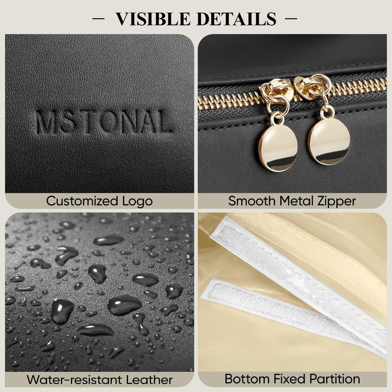 - 【Large Capacity】MSTONAL travel makeup bag is available in medium (9.5 "x4.7 "x4.7") and large (10.6 "x5.5 "x5.5"), equipped with multiple compartments and separate pockets to easily hold skincare, makeup bottles, makeup brushes, and other daily necessities.