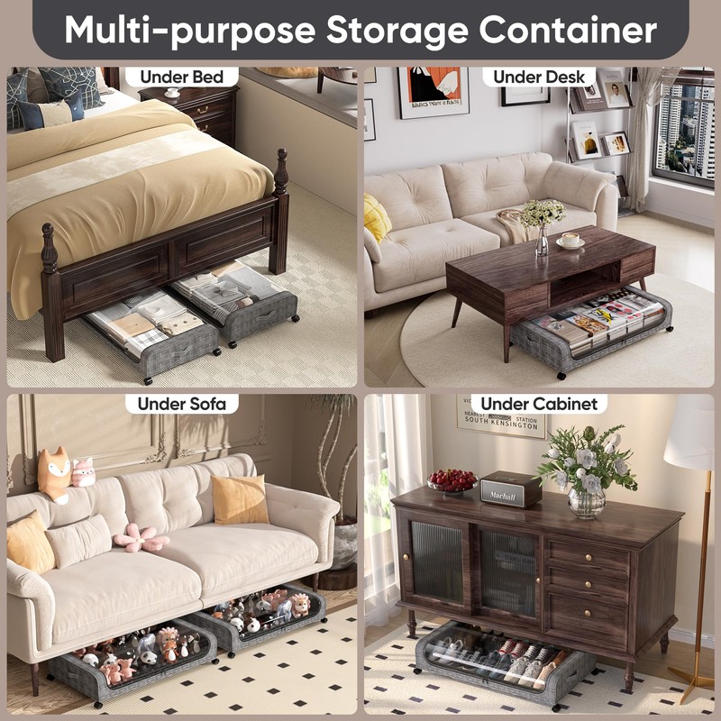 - 【Wide Applications】This under bed storage offers versatile applications, fitting not just under beds but also under tables, sofas, cabinets, or any furniture. It can store a variety of items, including clothes, toys, shoes, blankets, and towels, making your home from messy to tidy. When not in use, it folds up compactly, saving space—ideal for small families and dormitories needing extra storage.