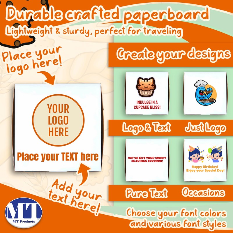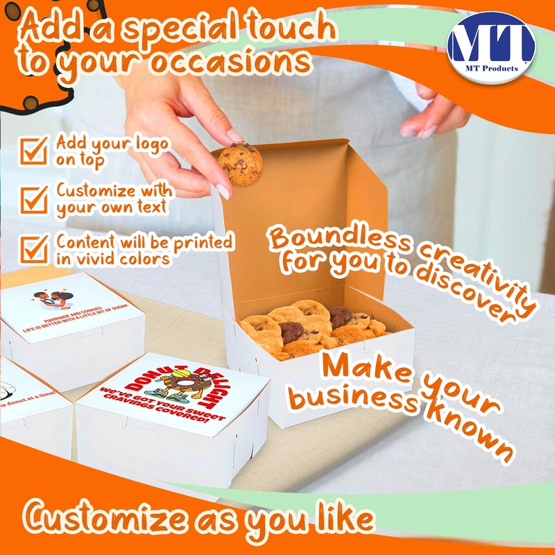 MT Products Custom Printed Bakery Boxes - 6" x 6" x 3" White Customizable Donut and Cupcake Boxes with Logo (Pack of 15) - Made in USA