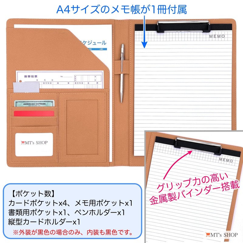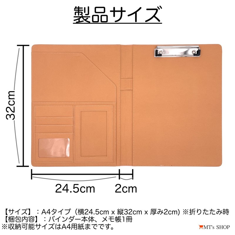 - Size: A4 type (W x H x D): 9.6 x 12.6 x 0.8 inches (24.5 x 32 x 2 cm); When folded; Weight: Approx. 20.5 oz (570 g); Package contents: Binder, notepad, *For the environment, we use simple packaging (OPP bag, etc.) "MT's SHOP" has acquired a trademark rights (35) through the Patent Office