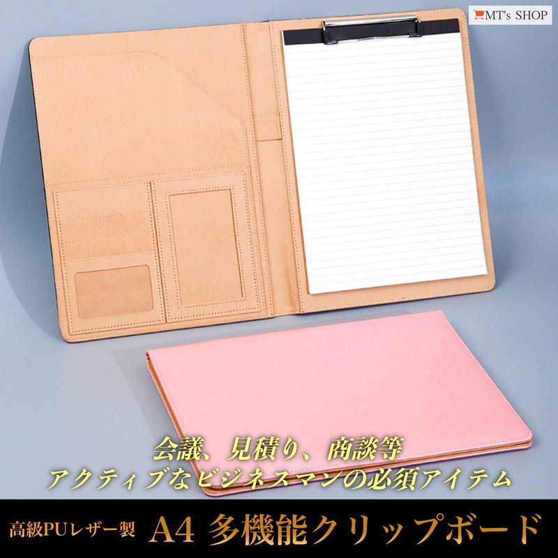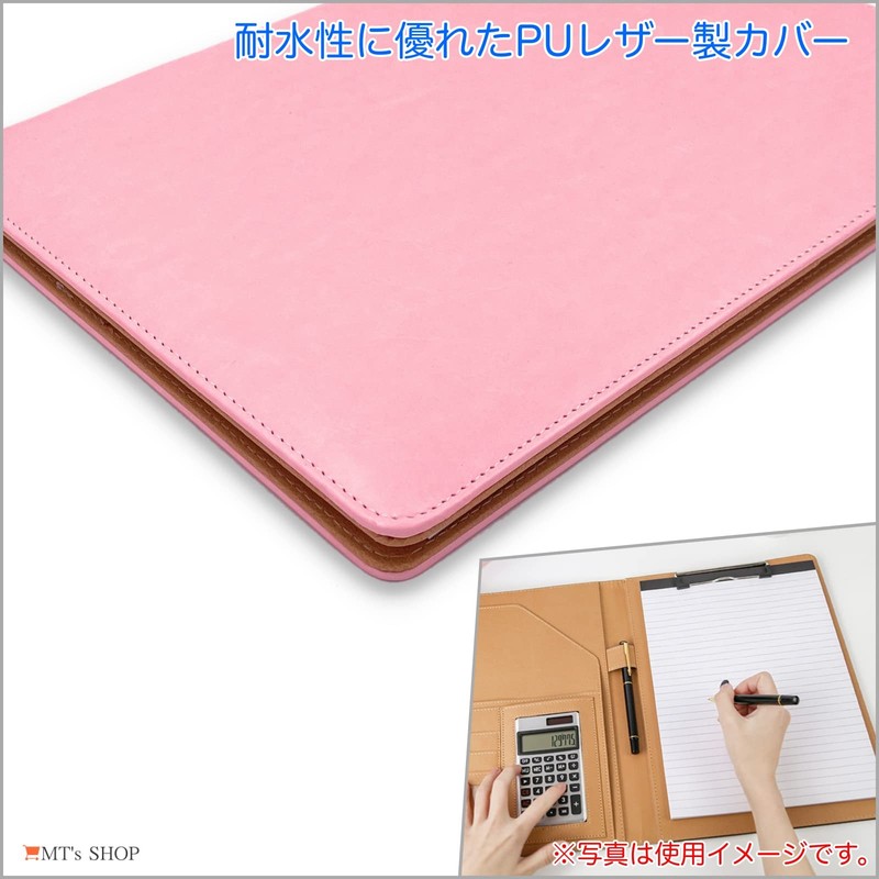 MT's SHOP Clipboard A4 PU Leather Multifunctional Folder File Folio Memo Pad Included OF283 (Pink)