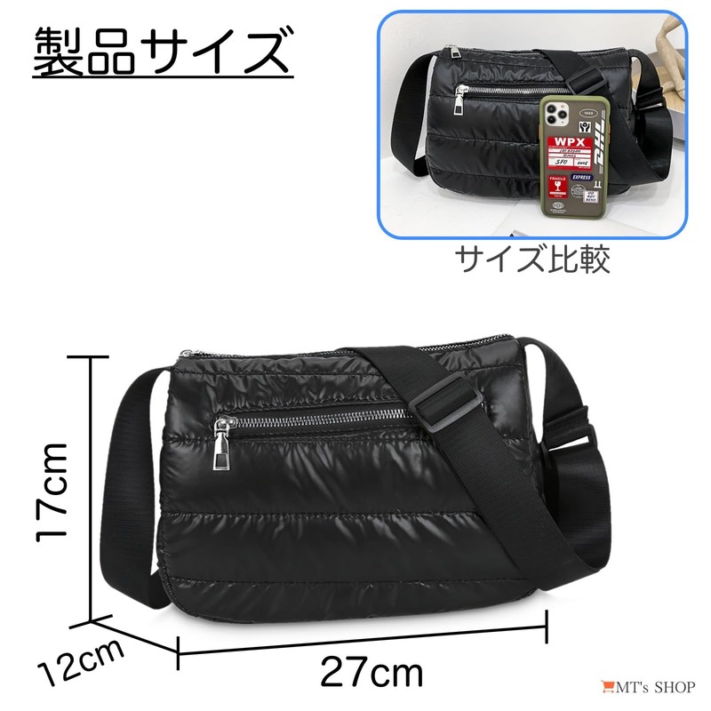 MT's SHOP SH389 Shoulder Bag, Pochette, Compact, Lightweight, Nylon, Glossy, Quilting, Fluffy, Cross-body, Shoulder Bag, Commuting to Work, Black