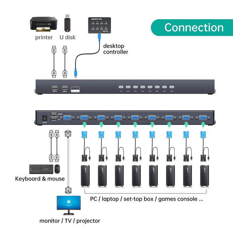 - Size: 8 port KVM VGA