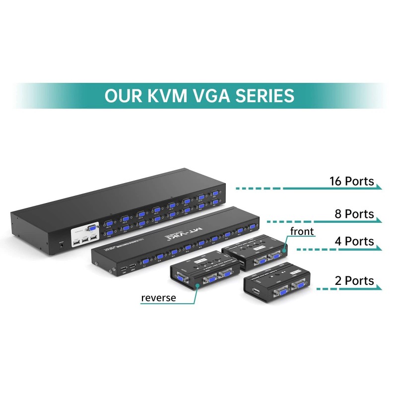 - MT-VIKI 801UK-L, this 8 port KVM switch allows 1 set of USB 2.0 Keyboard & Mouse & monitor to control 8 computers.