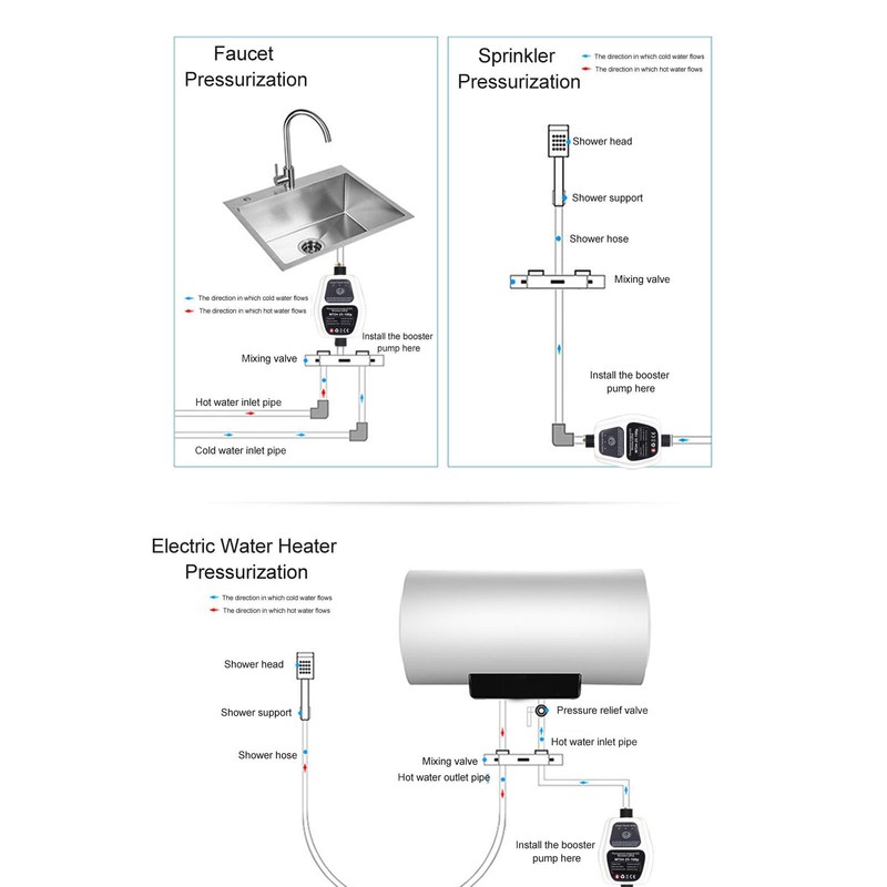 - DESIGN: Booster pump insulation class H, equipped with AC and DC converter, applicable voltage range of 100 to 240V, and reliable, no need to worry when using, suitable for a variety of power supply scenarios.