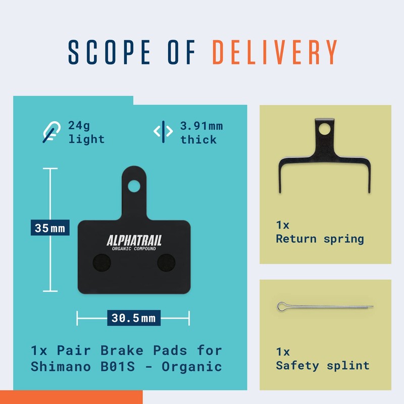 MTB brake pads for Shimano B01S B03S B05S MT200 & Tektro brakes I High-performance resin I Durable for e-bikes and mountain bikes I 1 pair of organic disc brake pads
