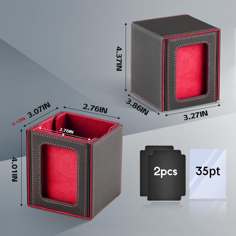 • (Excellent features):Made of sturdy, durable PU leather material on the outside, and soft microfiber lining inside,the external material can have a good waterproof effect, and the internal material containing fluff can effectively reduce damage to the card due to friction and we use magnets, which have strong magnetic force to ensure that the box can effectively protect players' cards from damage or loss even under severe shaking