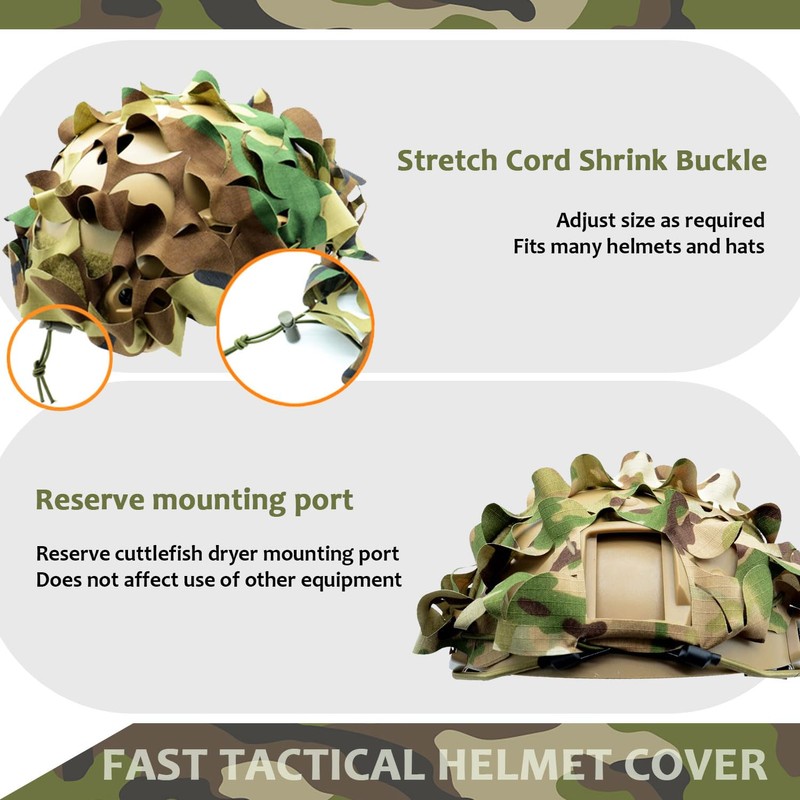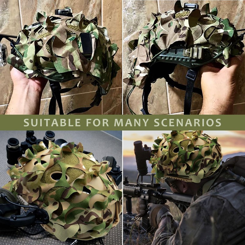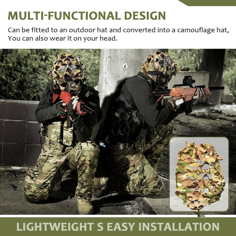 - 🪖Highly Flexible - Elastic drawstring secures to your helmet and adjusts the size of the helmet cover, can be mounted on an outdoor hat to convert it into a camouflage hat or put on your head, and can be mounted to your fast helmet in seconds.