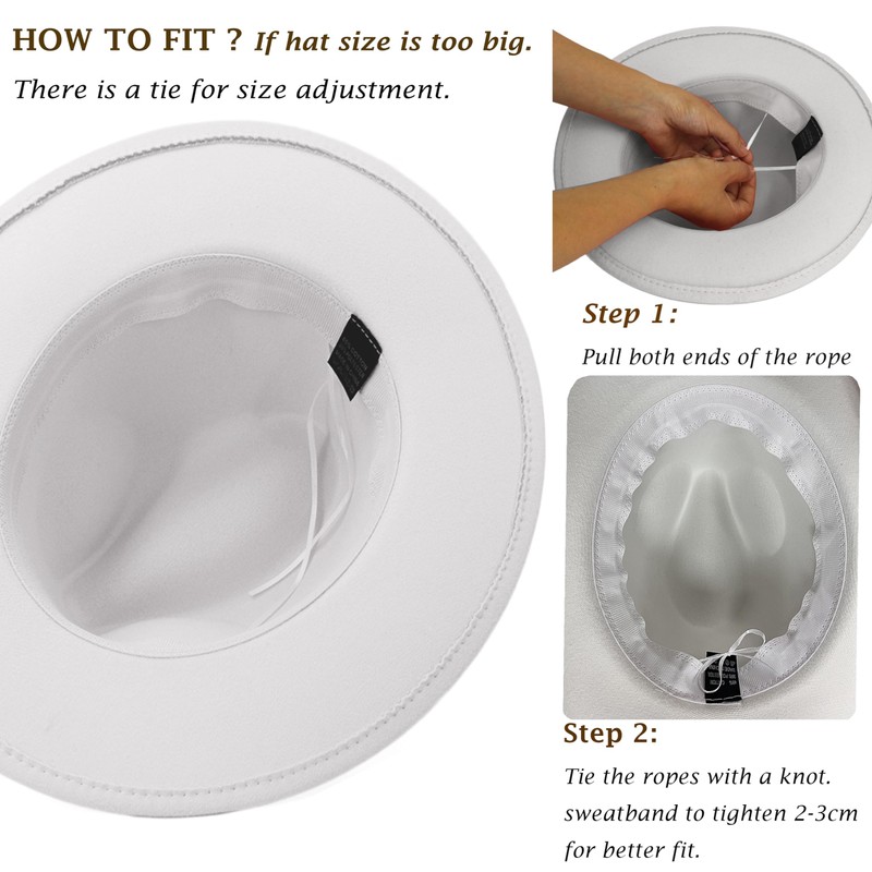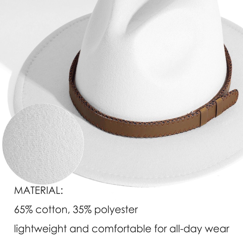 MTKCM Fedora Hats for Men Wide Brim Felt Hat Dress Cap Belt White