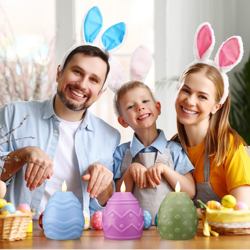 MTLEE 3 Pcs Easter Egg Flameless Candles 3 Color Scented Real Wax LED Spring Battery Operated Egg Shaped Votive Candles Gift for Easter Decoration Party Living Room Home Centerpiece