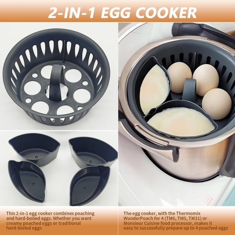 Mtlhbcg Thermomix Egg Cooker Compatible with TM5 TM6 TM31, Egg Cooker Holder, Egg Cooker 4 Eggs Egg Boiler, 2-in-1 Egg Boiler, Combined Eggs, Poaching Eggs in TM/MC, Thermomix Accessories, Thermomix