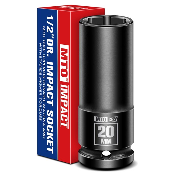 - Durable CR-V Steel: Made from high-quality Chromium-Vanadium (CR-V) alloy steel, MTO 20mm deep impact socket offers reliable strength and durability for everyday tasks. The CR-V material resists wear and tear under regular torque, making it well-suited for automotive repairs, general maintenance, and light to medium-duty construction tasks.
