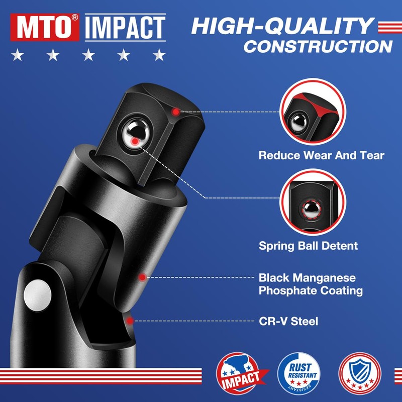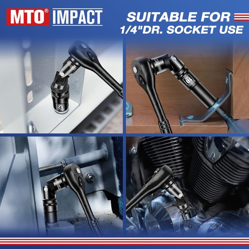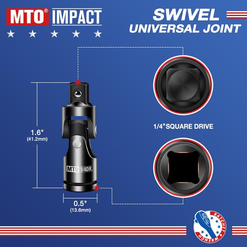 MTO Universal Joint Set 1PCS, 1/4"Drive Swivel Socket Set, Socket Adapter Set for Any Angle, Impact Grade CR-V Steel, for Wrench Ratchet Use
