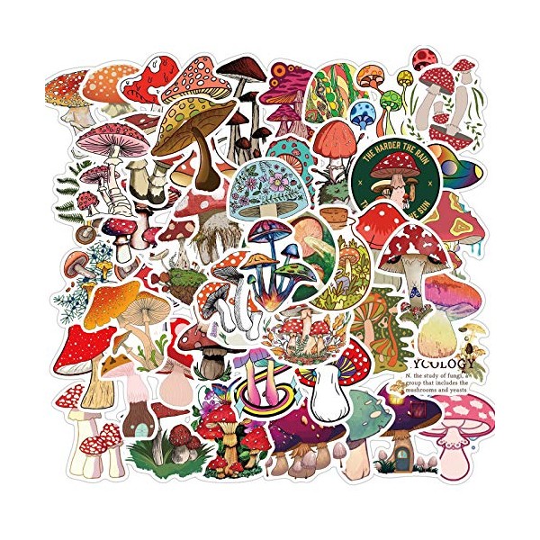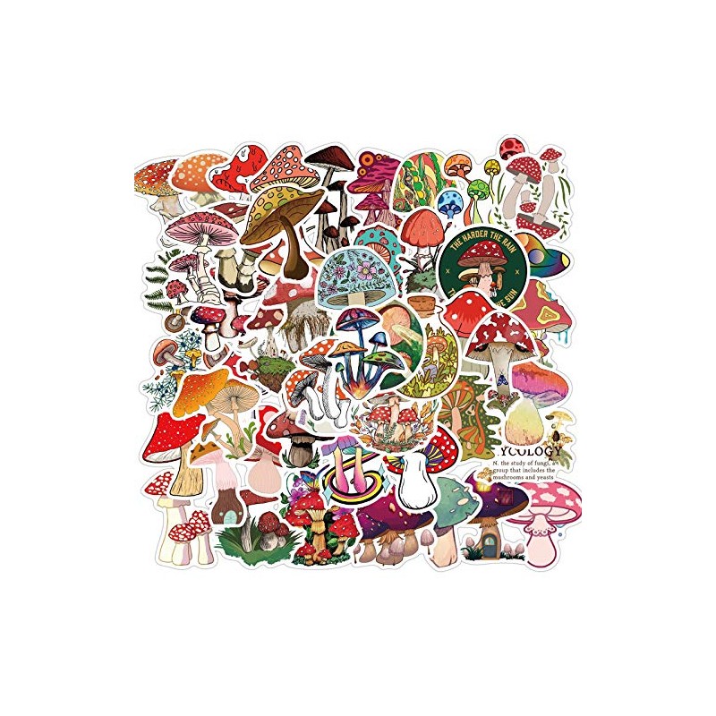 MTOP Mushroom Stickers, 50pcs Vinyl Waterproof Stickers for Laptop, Water Bottles, Bumper,Computer, Phone, Stickers and Decals