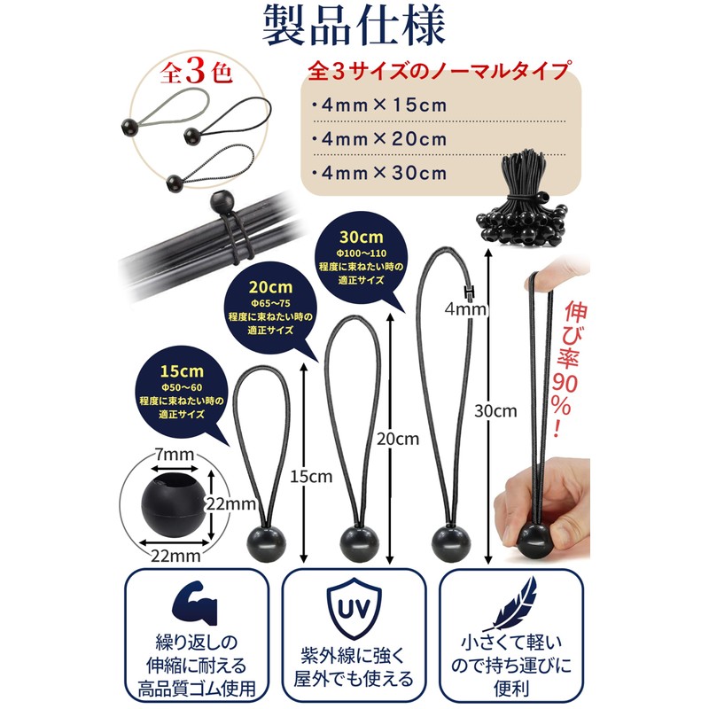 • Material: Ball bungee cord is made of high elastic rubber and plastic. UV resistant, corrosion resistant, and durable. No metal, no need to worry about rusting