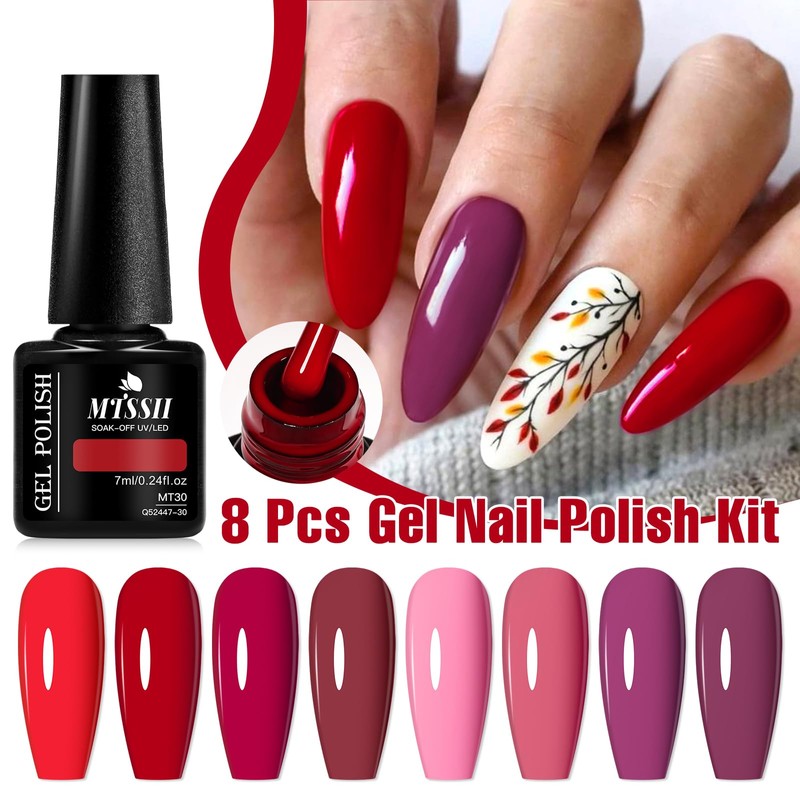 MTSSII 8PCS Gel Nail Polish Set, Soak Off UV LED Lamp Gel Nail Polish Kit (SET9, 8PCS)