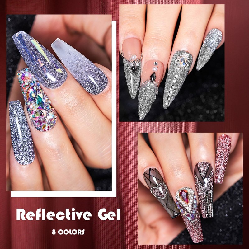 - VIBRANT COLLECTION: Set includes 8 stunning reflective glitter gel nail polish colors ranging from lime green to turquoise, perfect for creating dazzling nail designs.