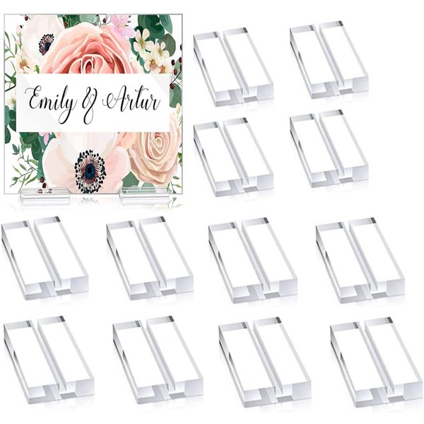 Mtxorvix 12 Pieces Acrylic Stands Clear Place Card Holders,Acrylic Sign Holder, Card Display Stand, Card Slot Stand for Wedding Table Numbers Display Stands Photos Wedding Party Events Office Business