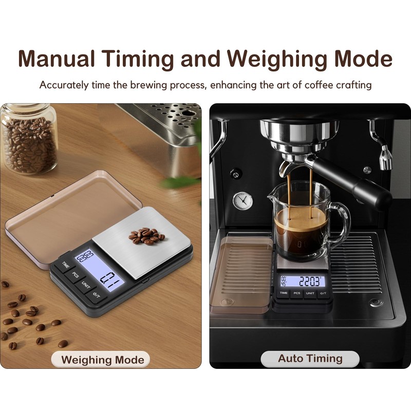 - [Zeitmessmodi und Wiegemodus] Neben dem manuellen Wiegemodus verfügt diese Kaffeewaage für Espresso auch über einen manuellen Zeitmodus. Dadurch können Sie den Brühvorgang präzise planen und so sicherstellen, dass Ihr Kaffee immer köstlich ist.