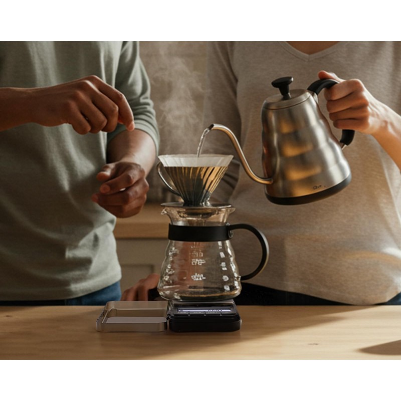 - [Kompakt und Professionell] Die Espressowaage misst nur 12 x 7 x 2,2 cm und ist so klein, dass sie in Ihre Handfläche passt. Die coffee scale wechselt nach 3 Minuten Inaktivität automatisch in den Ruhemodus. Zudem ist die kaffee feinwage mit einem abnehmbaren Silikonpad zum Oberflächenschutz ausgestattet, das wasserdicht, rutschfest, kratzfest und wärmeisolierend ist.