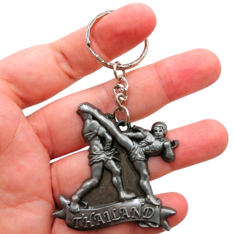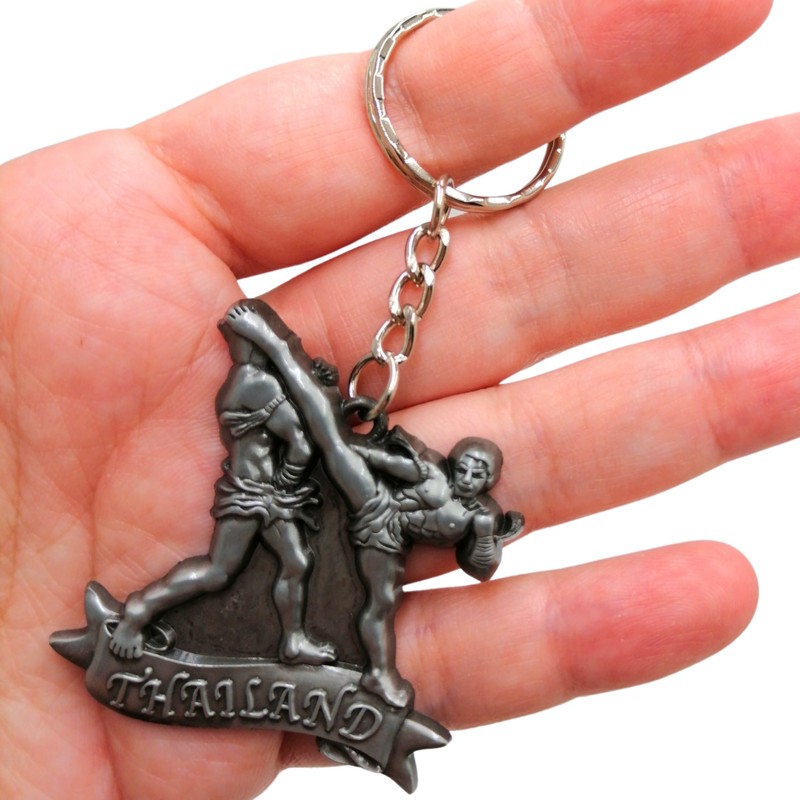 Muay Thai Keychain, Kick Boxing Keyring, Fighter Keychain, Fighting Postures Metal Key Holder, Silver, One Size
