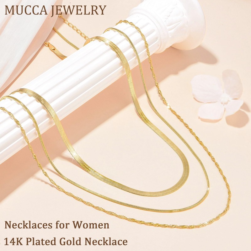 MUCCA necklaces for women set includes 3 gold necklaces in different styles and sizes.