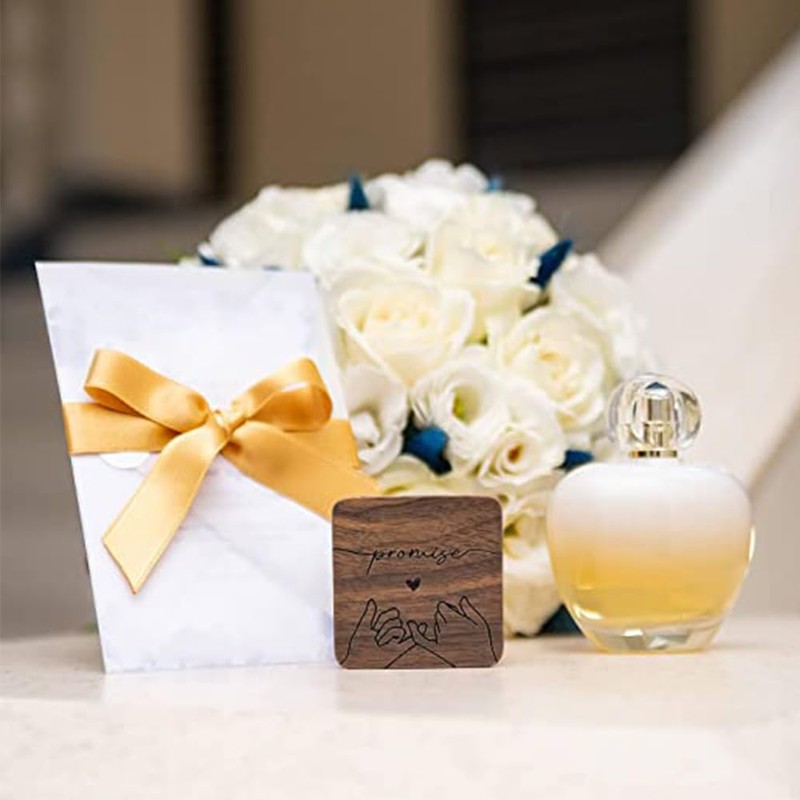 - 🪵【Shape】The wooden ring box is designed in a square structure,A pinky promise is engraved intricately in front of the box with the word “promise” as vow of love that will last forever