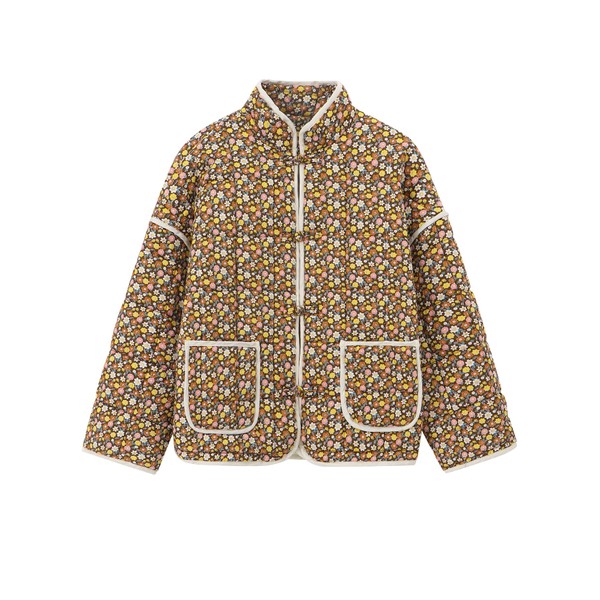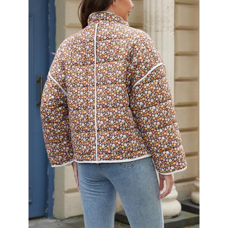 Muchpow Quilted Puffer Jacket for women Floral Printed Lightweight Cropped Bu...