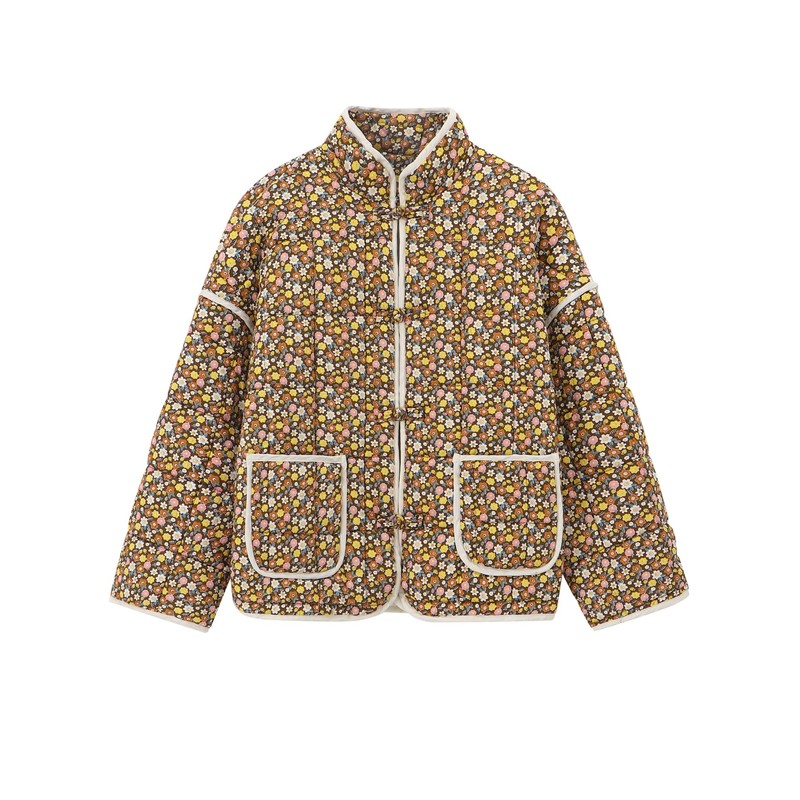 The button down print jacket features a loose fit design,long sleeves with shoulder drop,front button closure,practical pockets on both sides,exquisite floral prin with a vintage feel