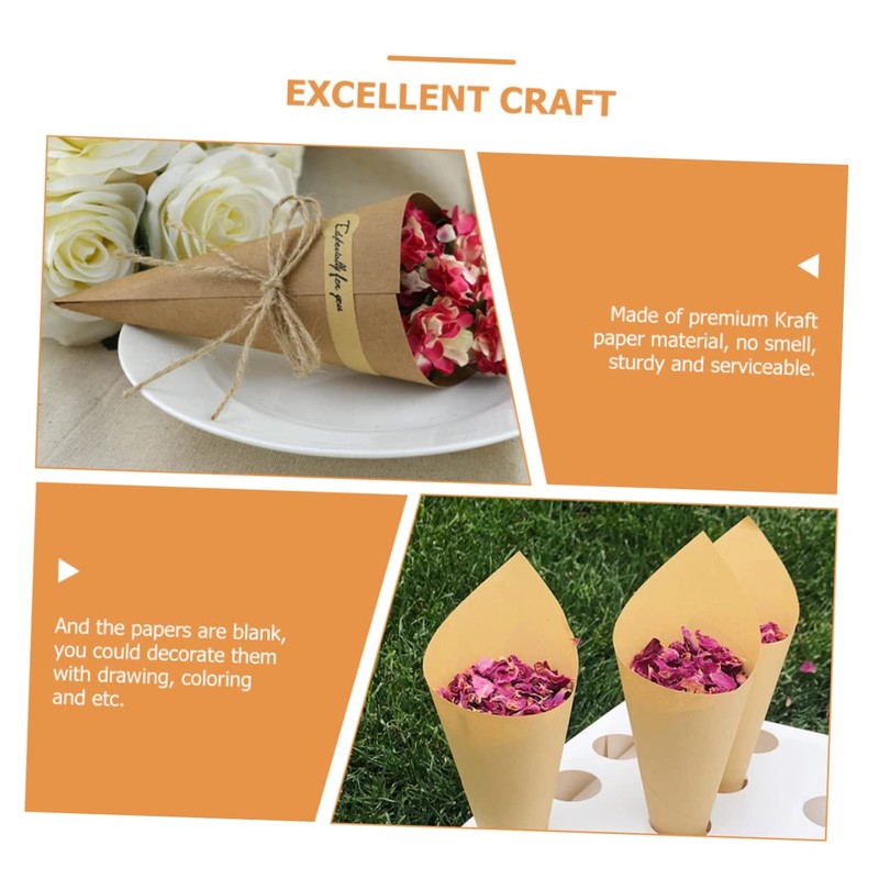 - Made of kraft paper material, exquisite and durable to help you create elegant small gift packaging for party and wedding paper petals cones.