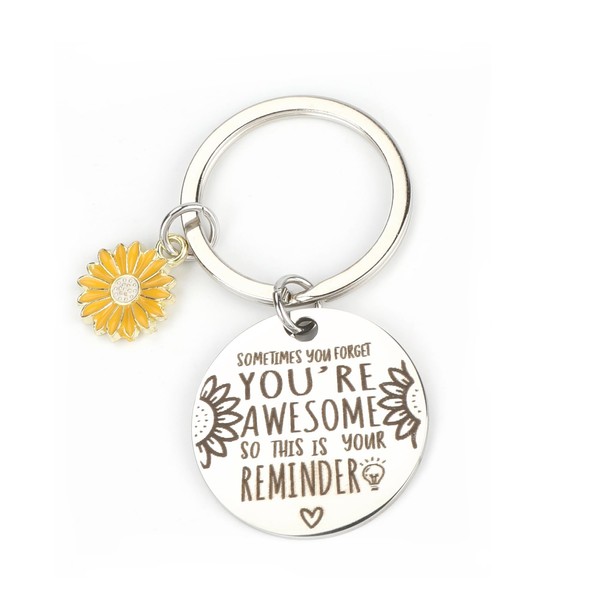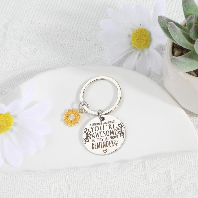 • Inspire with our Inspirational Keychain, a motivational gift for anyone who needs some motivation and positivity in their life. Whether it's for yourself or a loved one, the words that "SOMETIMES YOU FORGET YOU`RE AWESOME SO THIS IS YOUR REMINDER" is sure to bring a smile to their face every time they see it