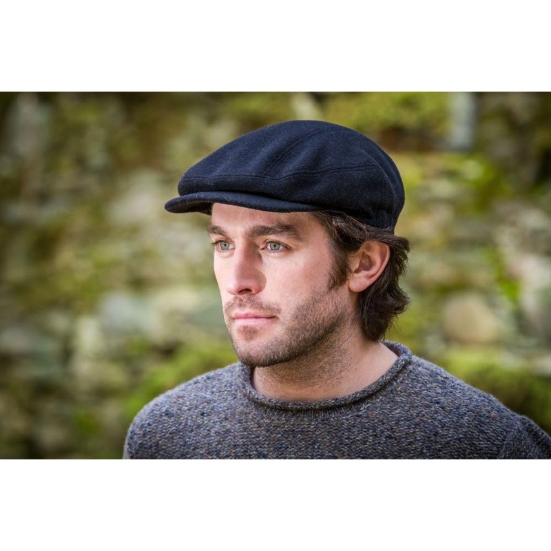Mucros Weavers Men's Irish Kerry Flat Cap 100% Wool Made in Ireland with Elastic in The Back (Black, Large)
