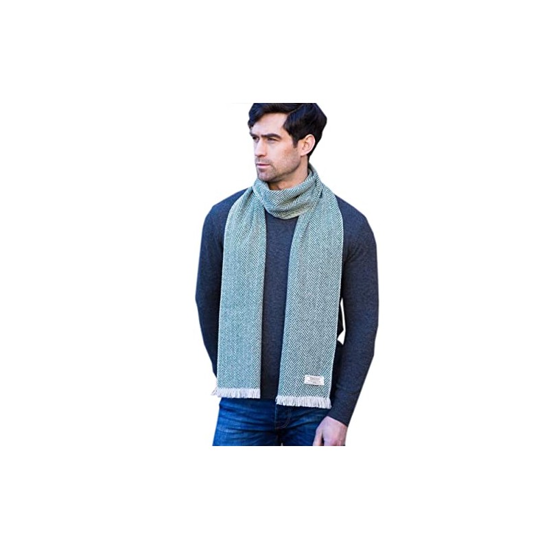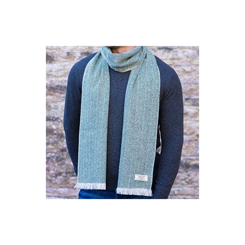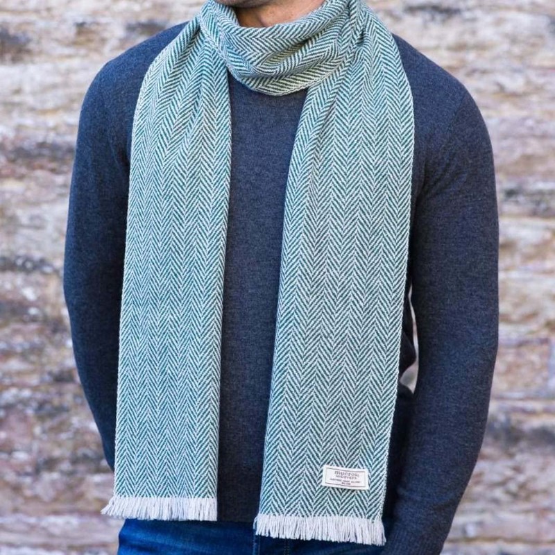 Mucros Weavers Men’s Tweed Scarf - Soft Donegal (Green Herringbone)