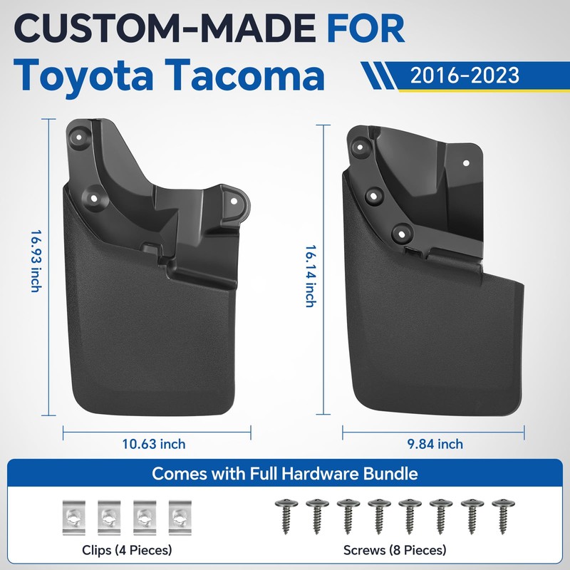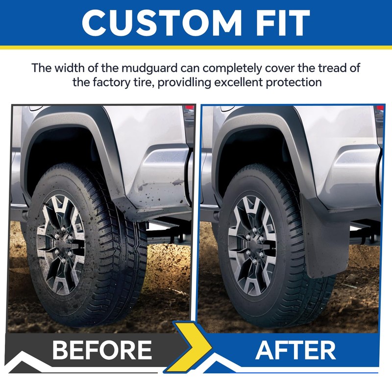 - 【PERFECT FIT LIKE FACTORY】Our Mud Flaps are tailor fit to match Toyota Tundra perfectly,Cause our mud guards are built to the maximum width for full-tread coverage for single/dually-factory tire width.