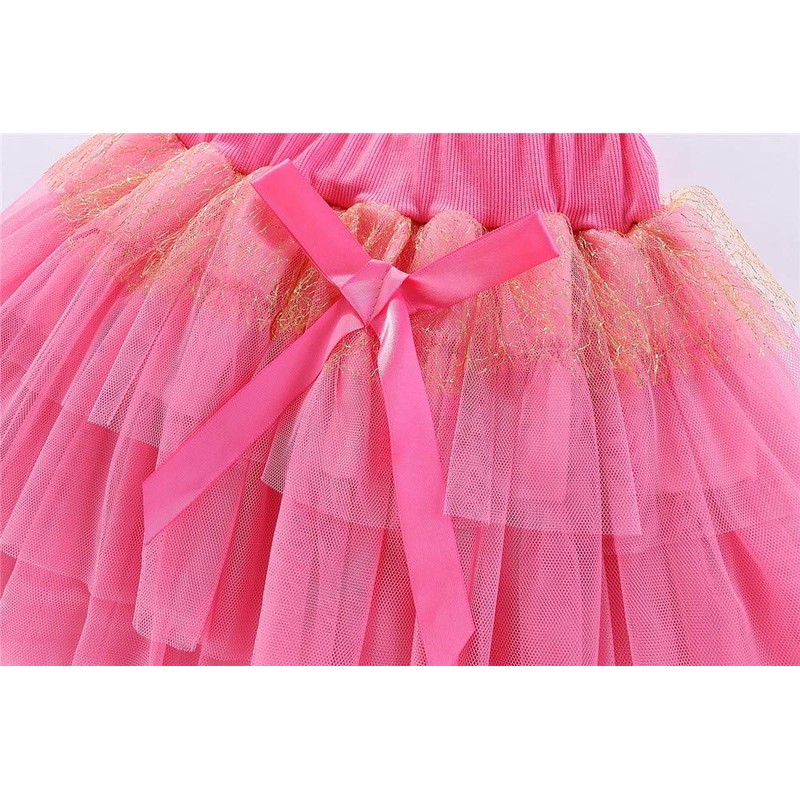 - Featured applique embroidery on the tee and layered skirt with a layer of golden tulle, super cute and nice looking