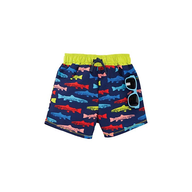 Mud Pie Boys Fish Swim Trunks with Sunglasses, Blue, 4T-5T