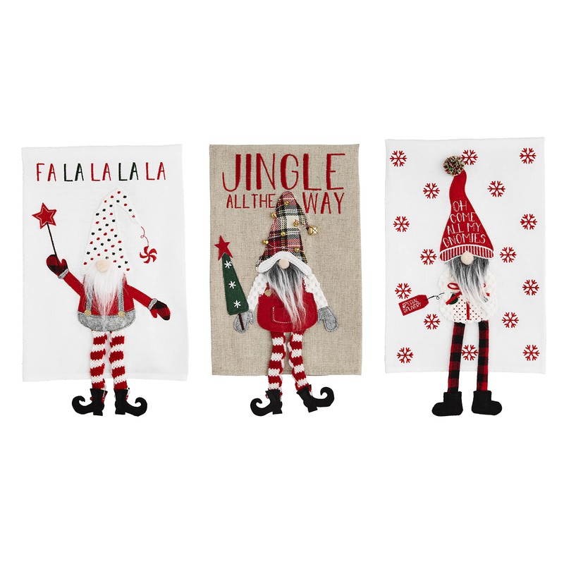 Mud Pie Christmas Dangle Gnome Tea Towel, FA La La, 21" x 14"