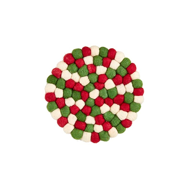 - The trivet is made of felted wool. The trivets feature pom poms throughout.