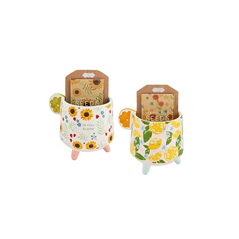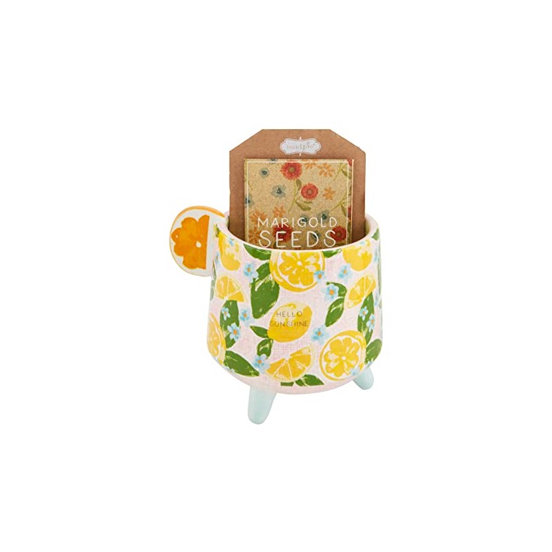 Mud Pie Hello Sunshine Pot W Seeds, Pot 4 1/2" x 4 1/4" | Seeds 4" x 2 1/2"