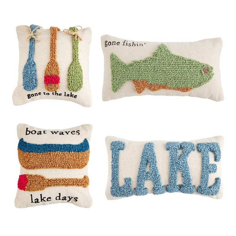 Mud Pie Mini Hook Lake Pillow, 1 Count (Pack of 1), Canoe