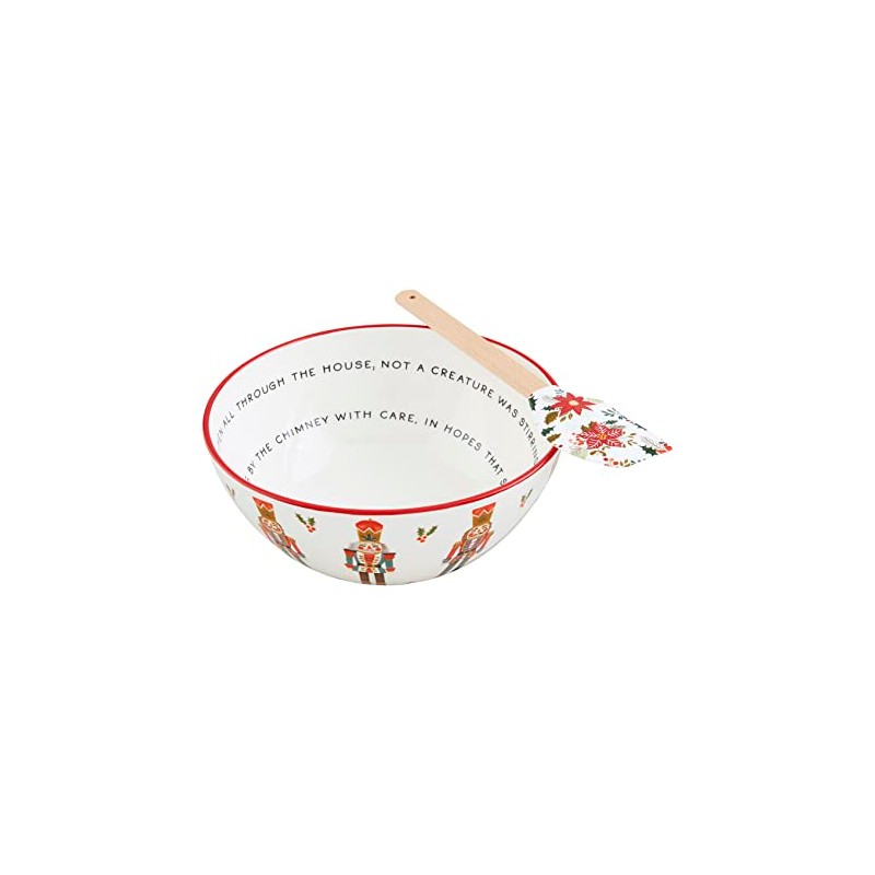 Mud Pie Nutcracker Bowl Set; bowl 4" x 9 1/2" dia | spatula 11 1/2"