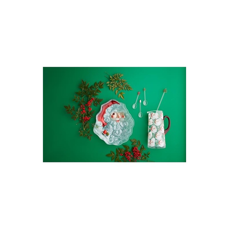 - It includes a beautiful glass pitcher with intricate details of Santa Claus himself