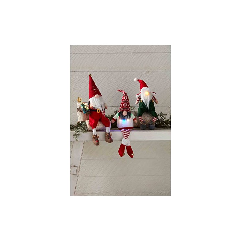 - The gnome is made of embellished felt, knit and faux fur. The gnome sings and lights up when button on hand is activated