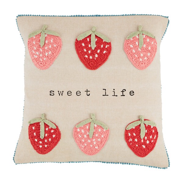 • The Crochet Strawberry Pillow is a charming addition to any home decor