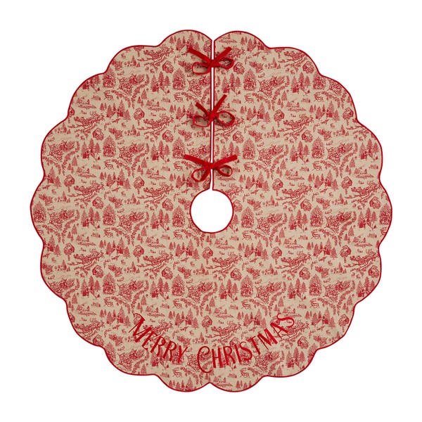 Mud Pie Toile Scalloped Tree Skirts, RED