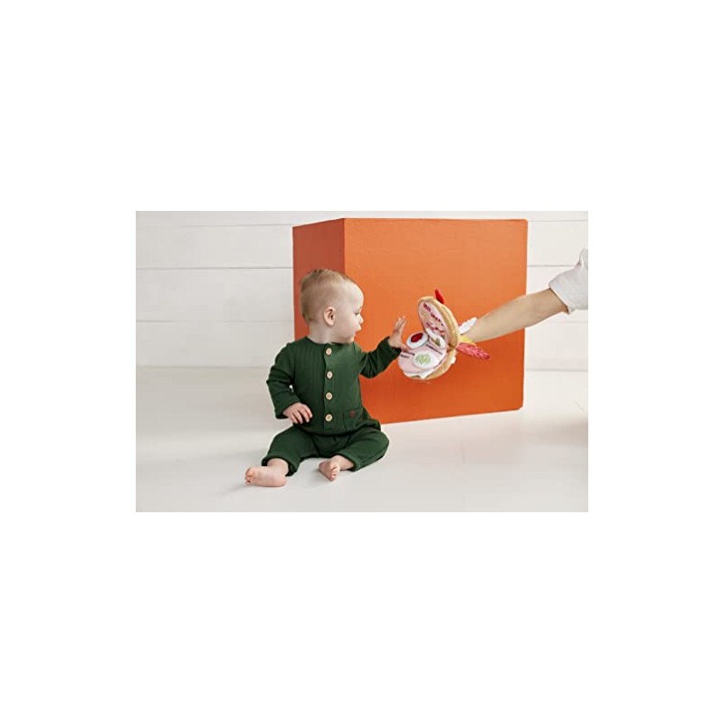 - Soft minky turkey puppet book includes illustrated story and matching pieces for interactive play.