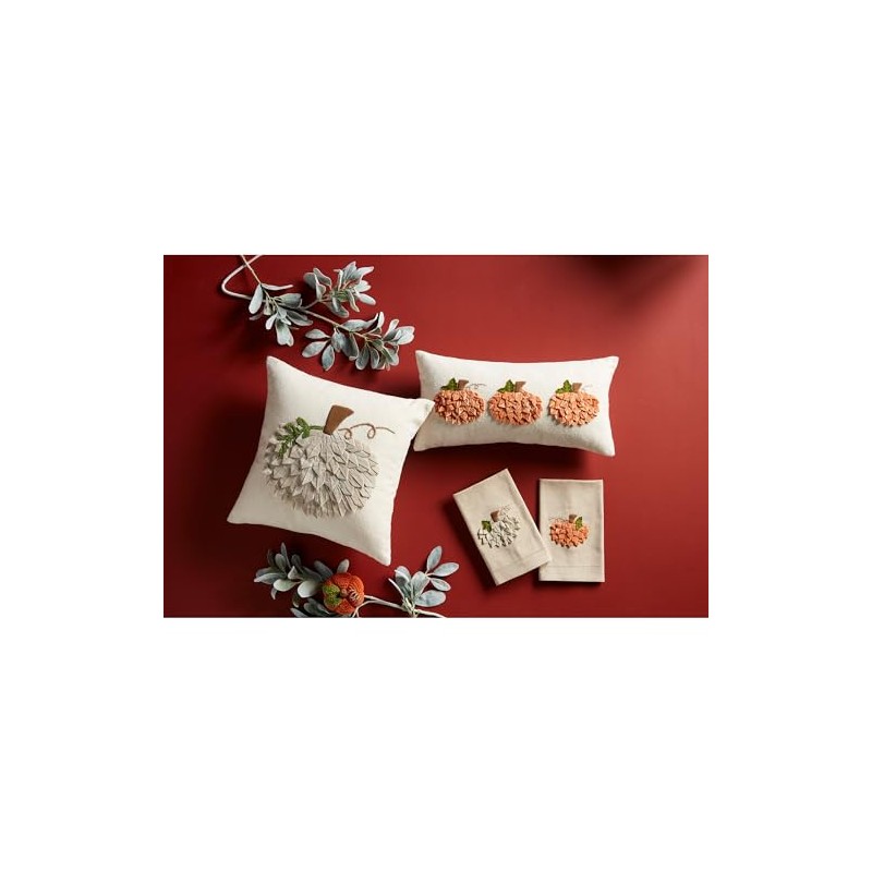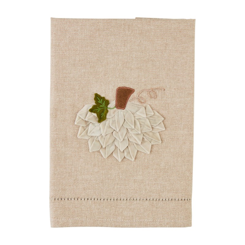 Mud Pie Velvet Pumpkin Towel, Cream, 21" x 14"