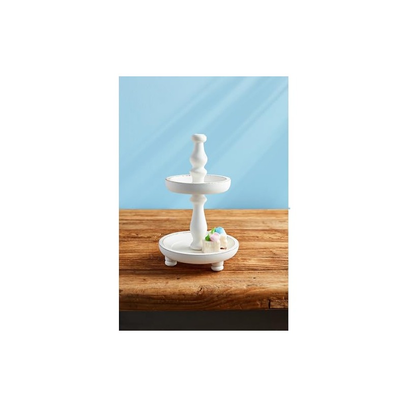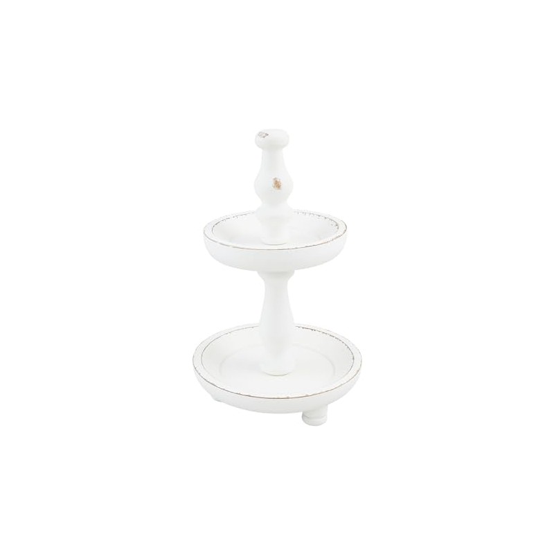 Mud Pie White Small Tiered Server, 12" x 8" dia