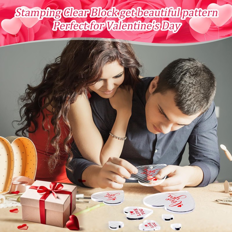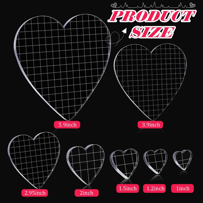 Mudder 7 Pieces Acrylic Stamp Blocks Set Clear Stamping Blocks Tools for Kids with Grid and Grip Scrapbooking Craft Making, Decorative DIY Essential Stamping Tool(Heart)
